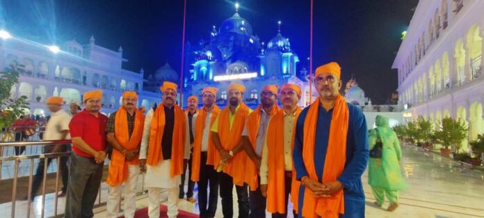 गुरुद्वारा प्रबंधक कमेटी ने केसरिया साफा पहनाकर कर दल का स्वागत किया