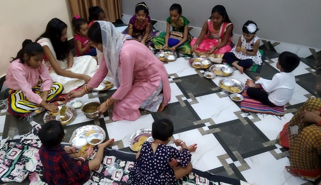 दुर्गा सप्तमी के अवसर पर माँ जगदम्बा की प्रतिमूर्ति नौ कन्याओं को कन्या भोज कराया गया। अधिकांश अष्टमी या नवमीं को नौ कन्या भोज कराया जाता है परंतु सप्तमी के अवसर पर नौ कन्या भोज की यह नई परंपरा देखने को मिली।