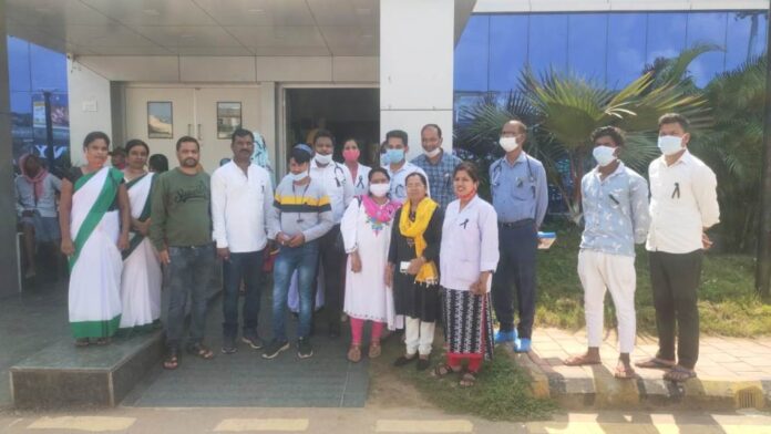 छतीसगढ प्रदेश स्वास्थ्यकर्मचारी संघ जिला बस्तर के जिला अध्यक्ष अजय परिहार के नेतृत्व मे महारानी अस्पताल मेडिकल कालेज कोविड हेल्थ सेंटर समस्त सी. एच. सी.केन्द्रो मे कार्यरत स्टाप नर्सो व महारानी के 171 समस्त अधिकारी/कर्मचारी का तीन महीने से वेतन का भुगतान ना होने पर आज काली पट्टी का तीसरा दिन लगाकर कार्य को सुचारू रूप से किया गया है डी. एम एफ टी. के समस्त अधिकारी/कर्मचारी के समर्थन मे समस्त महारानी अस्पताल के कर्मचारी द्वारा विगत एक सफ्ताह तक काली पट्टी लगा कर इनका समर्थन कर कार्य का संचालन किया जाएगा स्वास्थ्य कर्मचारीयो को वेतन का भुगतान ना होने के कारण बहुत से अधिकारी/कर्मचारियों को अपने वितीय खर्च पूरे करने के लिये उधार लेने तक विवश होना पड़ रहा है ऐसे समय मे दीपावली का बड़ा त्योहार है तो कर्मचारी त्योहार मनाये केसे डी. एम. एफ. टी. संविदा कर्मचारियों मे स्टाफ नर्स लैब टेक्नीशियन ओ. टी. टेक्नीशियन xray/ct scan टेक्नीशियन वाड बॉय वाड आया o.p.d. अस्सिटेंट क्लीनर जैसे लगभग 500 से डी. एम. एफ. टी. कार्यरत कर्मचारी कोरोना जैसे संकट काल मे अपनी सेवाऐ दे रहे है ऐसे कर्मचारी का तीन माह से वेतन का भुगतान ना होना प्रशासन के उदासीनता को दर्शाता है संघ जिला प्रशासन से माग करता है की स्वास्थ्य कर्मचारियो का तीन माह का वेतन यथाशीघ्र प्रदान करे अन्यथा वेतन का भुगतान ना करने पर संघ को आंदोलन के लिये बाध्य होगा जिसकी जबाबदारी प्रशासन की होगी प्रदर्शन कारीयो मे रूपेन्द्र सिंह डाँ भगत बघेल लक्ष्मी टाडिया गीतांजलि सिंह वाल्मीकि आकृति भीकम साहू सुलेखा प्रीति शोभना सपना धामनी लक्ष्मी आदि कर्मचारी उपस्थित थे |