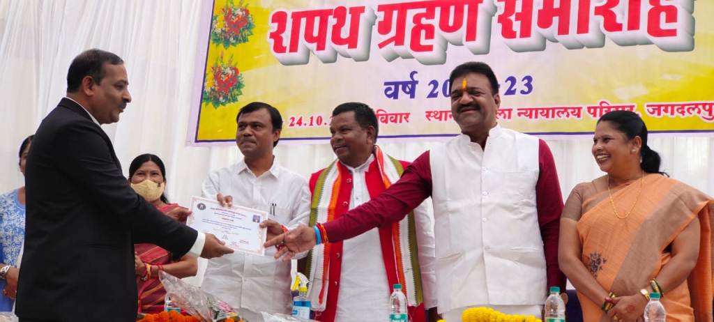 जिला अधिवक्ता संघ का शपथग्रहण समारोह जिला एवं सत्र न्यायालय परिसर में आयोजित किया गया जिसमें कार्यक्रम की अध्यक्षता जिला एवं सत्र न्यायाधीश सुमन एक्का एवं उधोग एवं आबकारी मंत्री कवासी लखमा, सांसद बस्तर दीपक बैज एवं विधायक जगदलपुर एवं संसदीय सचिव रेखचंद जैन की विशिष्ट अतिथि रहे।