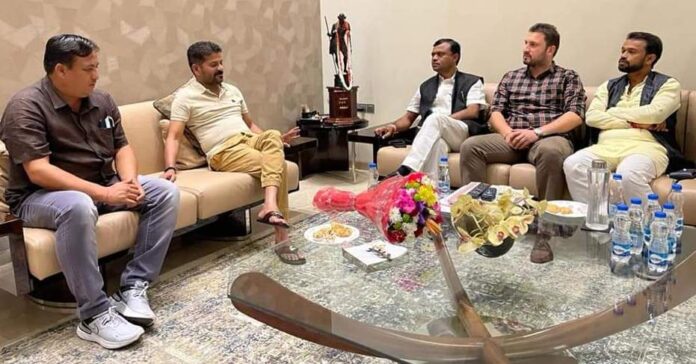 बस्तर सांसद दीपक बैज हैदराबाद प्रवास पर इस दौरान साथी सांसद एवं तेलंगाना प्रदेश कांग्रेस कमेटी अध्यक्ष रेवन्त रेड्डी जी के निवास में सौजन्य मुलाकात किया इस दौरन सांसद प्रतिनिधि सुशील मौर्य,महेश कश्यप,केदार ढेक,प्रवीण राणा,कार्तिक कपूर एवँ अन्य मौजूद रहे।..