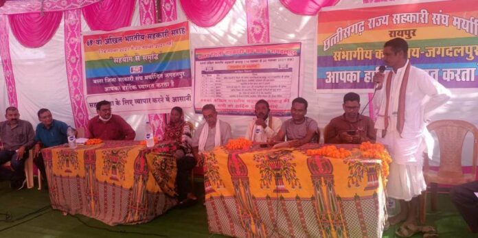 68 वां अखिल भारतीय सहकारी सप्ताह 2021 के दौरान बस्तर जिला सहकारी संघ मर्यादित जगदलपुर द्वारा आदिवासी बाहुल्य सुकमा जिले के आदिम जाति सेवा सहकारी समिति मर्यादित गादीरास में “ सहकारिता के लिए व्यापार करने में आसानी” विषय पर कार्यक्रम का आयोजन बोमके कवासी जी अध्यक्ष लैम्पस् गादीरास के मुख्य आतिथ्य एवं रामवती उपाध्यक्ष लैम्पस् गादीरास की अध्यक्षता में संपन्न किया गया।