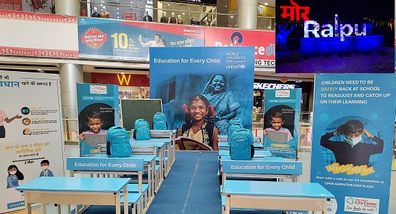 यूनिसेफ ने रायपुर में कई जगहों पर खाली कक्षाओं और अप्रयुक्त बैगों और किताबों वाली बेंचों के साथ काल्पनिक “महामारी कक्षाएं” लगाईं। यह पिछले 1.5 वर्षों में स्कूलों के बंद होने के कारण सीखने के संकट को उजागर करने के लिए किया गया । ये क्लासरूम शहर के तेलीबांधा तालाब, मैग्नेटो मॉल, सिटी सेंटर मॉल और अंबुजा मॉल में लगाई गयी।