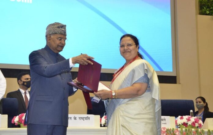 राष्ट्रपति के हाथों छत्तीसगढ़ की महिला एवं बाल विकास मंत्री अनिला भेेंड़िया ने ग्रहण किया अवार्ड