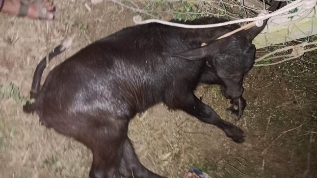 दल्ली राजहरा के वार्ड नंबर 7 टीचर कॉलोनी निवासी विशाल सिंह के खटाल से भैंस के बछिया को कुछ अज्ञात लोगों के द्वारा 6 दिसम्बर दिन सोमवार की रात्रि 11:00 बजे चोरी कर ले जाया गया तथा जंगल में ले जाकर बछड़े के गले को बांधकर उसे मार डाला गया है। बछड़े को देखने से ऐसा प्रतीत हो रहा है कि उसे बेदर्दी से मारा गया है उसके शरीर में चोट के निशान है। जगह-जगह से खून निकला हुआ है तथा आरोपी लोगों को इतने में भी उनका मन नहीं भरा और उनके द्वारा बछड़े के मलद्वार पर बॉस का डंडा डाल दिया गया है तथा आंख को भी फोड़ दिए हैं । शांत प्रिय तथा धार्मिक नगरी दल्ली राजहरा में इस तरह का कृत्य धार्मिक भावनाओं भड़काने के लिए तो नहीं किया जा रहा है ।