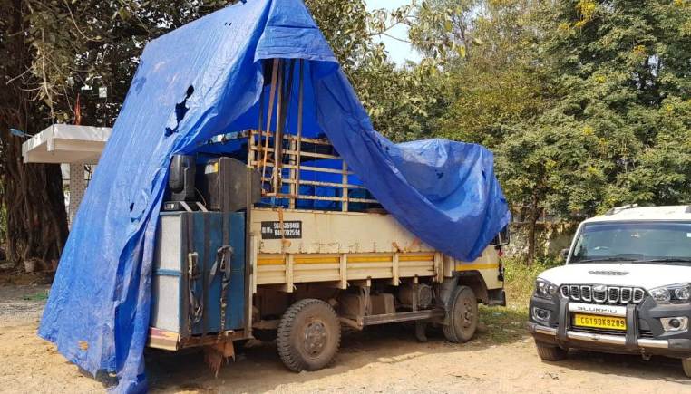 जप्तीः- चार चक्का आईसर, वाहन क्रमांक-cg05 A D 2516 मेें लगे डी0जे0 साउण्ड सिस्टम 04 नग बेस एवं 01 लैपटाॅप, 04 गन लाईनरे, 02 टाप, 05 नग एम्लीफायर, 05 नग क्रंास ओवर, 03 नग साउण्ड सिस्टम, 04 नग सार्पी लाईट, 10 नग बडा बाक्स सिस्टम, 01 जनरेटर।