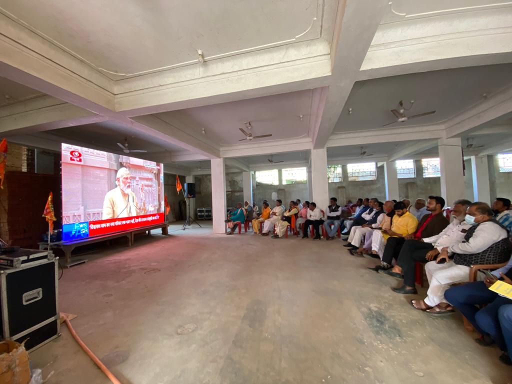 काशी विश्वनाथ कॉरिडोर का लाइव प्रसारण देखने अनुपमा चौक स्थित मिथिला भवन में उमड़े लोग ,बीजेपी ने किया था आयोजन