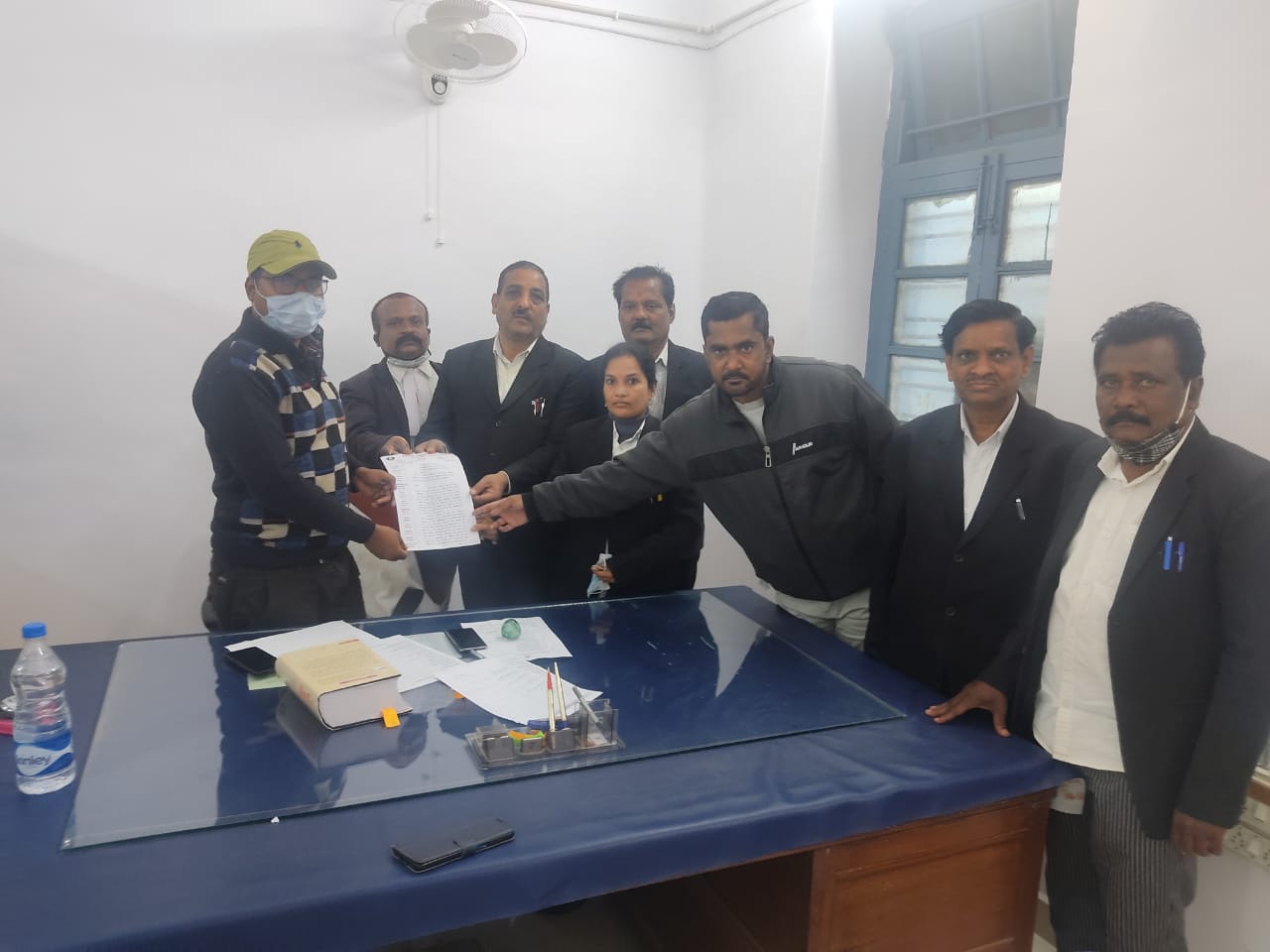 बस्तर जिला अधिवक्ता संघ जगदलपुर ने प्रस्तावित नोटरी एक्ट में संशोधन के विरुद्ध राष्ट्रपति के नाम ज्ञापन कलेक्टर की अनुपस्थिति में डिप्टी कलेक्टर नितिन पैकरा को सौंपा