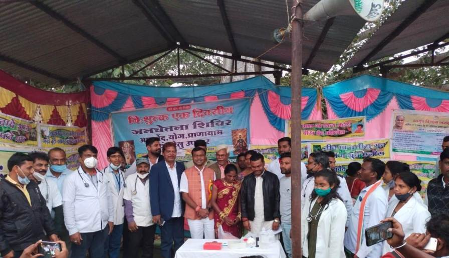 भानपुरी ।..विकासखंड बस्तर के ग्राम पंचायत पखना कोगरा मे जिला आयुर्वेद अधिकारी डॉक्टर जुगनू राम नेताम के दिशा निर्देशन पर ब्लॉक स्तरीय आयुष स्वास्थ्य मेला पखनाकोगेरा में आयोजित की गई ग्राम के सरपंच रेनी बाई , जदू राम ,एवं पूर्व जनपद सदस्य श्याम दीवान के द्वारा भगवान धनवंतरी के छाया चित्र पर दीप प्रज्वलित कर इस स्वास्थ्य शिविर का शुभारंभ किया गया निशुल्क आयुष स्वास्थ्य शिविर में कोरोना संक्रमण से बचाव के लिए रोग प्रतिरोधक क्षमता बढ़ाने के लिए इम्यूनिटी बूस्टर आयुर्वेदि काढ़ा वितरण किया किया गया शिविर में 350 रोगियों को उपचार प्रदान कर ,खून पेशाब का जांच ,बुखार ,मधुमेह उच्च रक्तचाप, स्वास, वात रोग चर्म रोग आदि उपचार एवं जांच आयुर्वेदिक औषधि निशुल्क वितरण किया गया इस स्वास्थ्य मेला में (नोडल अधिकारी )डॉ. आनंद सिंह