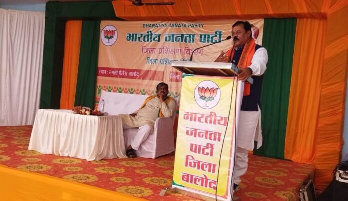 बालोद शहर के समता पैलेस में भारतीय जनता पार्टी द्वारा तीन दिवसीय आवासीय प्रशिक्षण वर्ग का आयोजन किया गया है जहां पर वर्ग के दूसरे दिन विभिन्न विषयों पर वक्ताओं ने अपने विचार रखे सप्तम सत्र से दिन की शुरुआत हुई व्यक्तित्व विकास पर अपना विचार उन्होंने कार्यकर्ताओं के समक्ष रखा उन्होंने कहा की भाजपा एक ऐसी पार्टी है जो अपने कार्यकर्ताओं को प्रशिक्षित करती है भाजपा ऐसी पार्टी है जिस पार्टी के प्रधानमंत्री नरेंद्र मोदी हैं आजादी के बाद आज 72 – 73 सालों में ऐसी विचार आया की धारा 370 हटना चाहिए, तीन तलाक खत्म होना चाहिए हम ऐसी पार्टी के कार्यकर्ता हैं जो विश्व का सबसे बड़ा दल है।