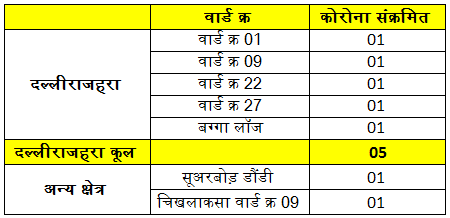 आज दल्लीराजहरा एवं आसपास के क्षेत्र में कोरोना संक्रमितों की स्थिति इस प्रकार रही –