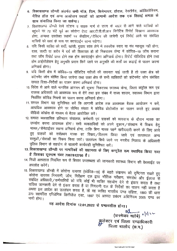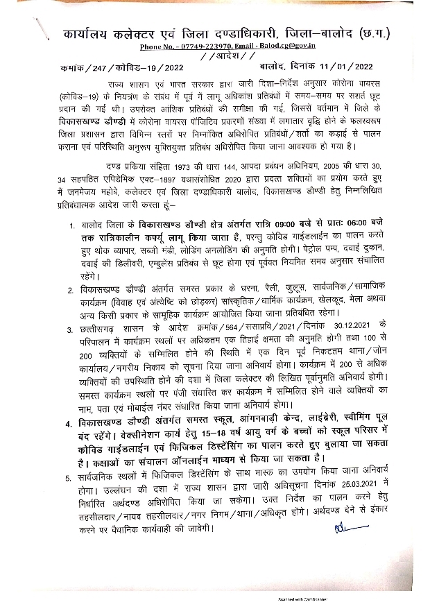 छत्तीसगढ़ जिले में कोरोना संक्रमितों की संख्या में हो रही वृद्धि को लेकर डौंडी ब्लाक को जिला कलेक्टर ने प्रतिबंधात्मक आदेश जारी किया, जाने क्या क्या रहेगा बंद By City Media - January 11, 2022 0 1483 Facebook Twitter Google+ Pinterest WhatsApp जिले में कोरोना संक्रमितों की संख्या में हो रही वृद्धि को लेकर डौंडी ब्लाक को जिला कलेक्टर ने प्रतिबंधात्मक आदेश जारी किया