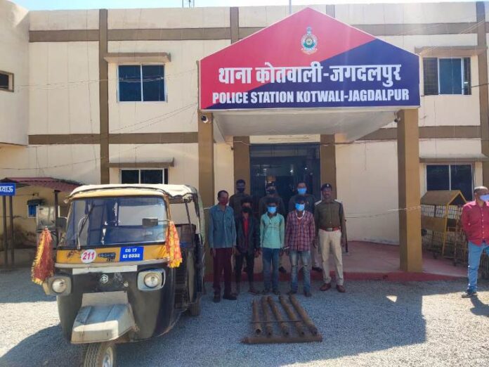 जगदलपुर शहर के बोरपदर क्षेत्र में बाड़ा अंदर खड़ी बोरिंग बोरवेल गाडी से ड्रिलिंग राड को चोरी करने वाले 04 आरोपियों को पकड़ने में बस्तर पुलिस को सफलता मिली है। ज्ञात हो कि दिनांक 25.01.2022 को प्रार्थी ओंकार पाण्डे के बाड़ा अंदर खड़ी बोरवेल गाड़ी में रखी ड्रिलिंग राड 30-35 नग कीमती 1,75,000/-रूपये को किसी अज्ञात चोर द्वारा बाड़ा के दिवाल को छेंद कर, चोरी कर ले गया है कि रिपोर्ट पर थाना कोतवाली में अप0क्र0-25/2022 धारा 457,380,34 भादवि0 कायम कर, अनुसंधान में लिया गया है। मामले की गंभीरता को देखते हुये वरिष्ठ पुलिस अधीक्षक जीतेन्द्र सिंह मीणा एवं अति0 पुलिस अधीक्षक ओमप्रकाश शर्मा के मार्गदर्शन में नगर पुलिस अधीक्षक हेमसागर सिदार के पर्यवेक्षण में निरीक्षक एमन साहू के नेतृत्व में टीम गठित किया गया।