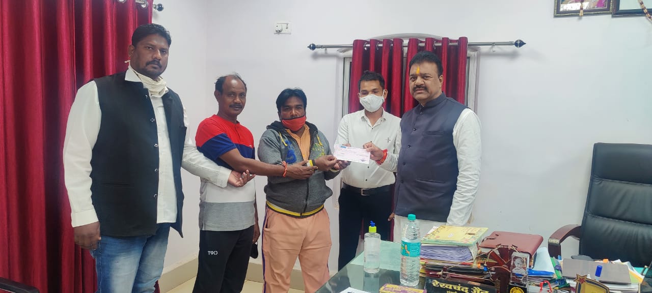 विदित हो की शहर के युवा मोहम्मद साकिर खान जो पैर के नसों की गंभीर बिमारी से पीड़ित होकर आर्थिक परेशानियों से जूझ रहे थे | उन्होंने विधायक जगदलपुर एवं संसदीय सचिव रेखचंद जैन के माध्यम से प्रदेश के संवेदनशील मुख्यमंत्री भूपेश बघेल जी से अपने इलाज हेतु आर्थिक सहायता प्रदान करने का निवेदन किया था, जिसपर संवेदनशील मुख्यमंत्री भूपेश बघेल जी ने संवेदनशीलता से दो लाख रुपए प्रदान किया जिसका चेक आज विधायक जगदलपुर एवं संसदीय सचिव रेखचंद जैन ने प्रदान किया |