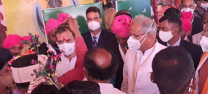 छत्तीसगढ़क्षेत्रीय समाचार आदिवासी समाज से राहुल की मुलाकात By City Media - February 3, 2022 0 115 Facebook Twitter Google+ Pinterest WhatsApp रायपुर। सांसद राहुल गांधी के साइंस कॉलेज स्थित मुख्य कार्यक्रम स्थल में आदिवासी समाज के लोगों से मुलाकात की। समाज के लोगों ने उनका परम्परागत ढंग से स्वागत किया। मुख्यमंत्री भूपेश बघेल उनके साथ थे।