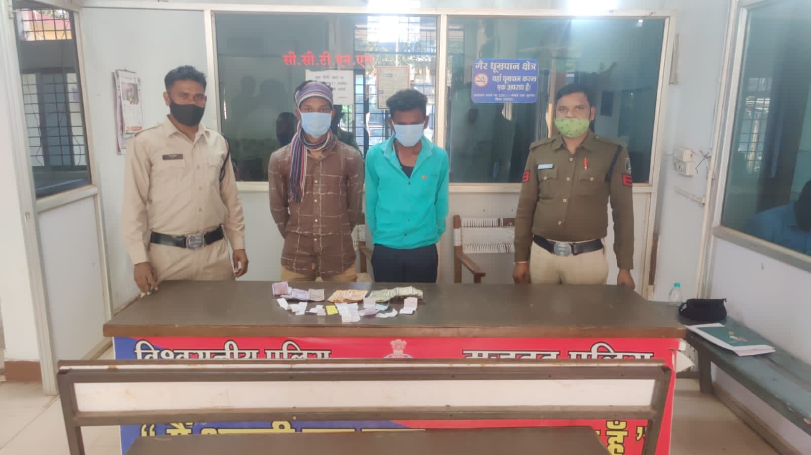 जगदलपुर शहर के दो अलग-अलग स्थान भगत सिंह वार्ड व महारानी वार्ड पानी टंकी के पास में दो सटोरियो के खिलाफ कार्यवाही में बस्तर पुलिस को सफलता मिली है। ज्ञात हो कि दिनांक 04.02.2022 को जरिये मुखबीर सूचना प्राप्त हुआ कि उक्त स्थानों में दो व्यक्तियों के द्वारा कुछ लोगों से रूपये पैसे लेकर सट्टा-पट्टी लिखकर जुआ खेला कर, अवैध तरीके से धन अर्जित कर रहे है कि सूचना प्राप्त होने पर उप पुलिस महानिरीक्षक एवं वरिष्ठ पुलिस अधीक्षक महोदय, श्री जितेन्द्र सिंह मीणा व अति0 पुलिस अधीक्षक ओमप्रकाश शर्मा के मार्गदर्शन एवं नगर पुलिस अधीक्षक हेमसागर सिदार के पर्यवेक्षण में थाना प्रभारी कोतवाली, निरीक्षक एमन साहू के नेतृत्व में थाना कोतवाली से दो अलग-अलग टीम गठित कर, टीम उक्त स्थानों में रवाना किया गया। जहाॅ पर टीम द्वारा दबिश देकर, घेराबंदी कर उक्त व्यक्तियों को पकड़कर पुछताछ करने पर अपना नाम-1. राजु बघेल पिता स्व0 पाकलू बघेल नि0 आमागुडा माता मंदिर पास जगदलपुर एवं 2. सेबिया राज पिता स्व0 थामसराज निवासी रवीन्द्रनाथ टैगोर वार्ड जगदलपुर का होना बताये। जिस पर आरोपी राजु बघेल के कब्जे से नगदी रकम 2500/-रूपये, 10 नग सट्टा-पट्टी पर्ची तथा सेबिया राज के कब्जे से नगदी रकम 7500/-रूपये, 20 नग सट्टा-पट्टी पर्ची बरामद किया गया। आरोपियों का कृत्य धारा 4(क) जुआ एक्ट का घटित करना पाये जाने से थाना कोतवाली जगदलपुर में अलग-अलग अप0क्र0-36/2022 व अप0क्र0-37/2022 धारा 4(क) जुआ एक्ट के तहत् अपराध पंजीबद्ध किया गया।
