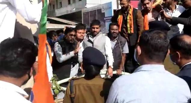 भाजपा कार्यकर्ताओं के साथ पुलिस की फिर हुई झूमाझटकी