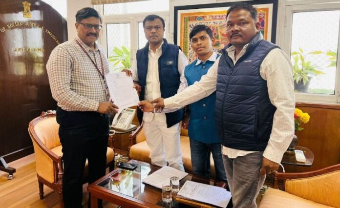 बरसों से आरक्षण से वंचित बस्तर संभाग के मूल जाति माहरा समुदाय के आरक्षण हेतु आबकारी मंत्री कवासी लखमा जी के मार्गदर्शन में बस्तर सांसद दीपक बैज जी के द्वारा दिल्ली में छत्तीसगढ़ राज्य के प्रस्ताव पे भारत सरकार के सचिव आर.सुब्रमण्यम जी सामाजिक न्याय एवं अधिकारिता मंत्रालय शास्त्री भवन नई दिल्ली एवं विवेक जोशी महाराजिस्ट्रार (RGI) से मुलाकात किया गया।