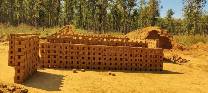 अवैध तौर पर वन कटाई कर ईंट पकाने में किया जा रहा उपयोग