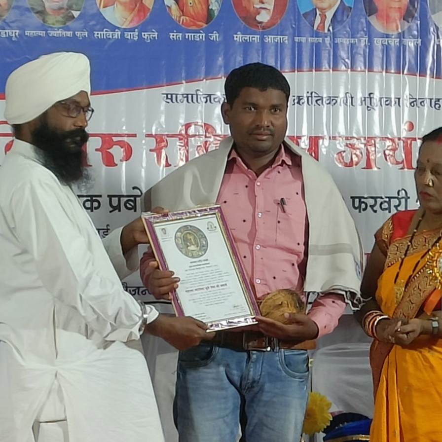 समाज सेवक सरदार प्रकाश सिंह पाठक व विशिष्ट अतिथि गुरुचरण दास मानिकपुरी के सानिध्य में संपन्न हुए इस कार्यक्रम में कार्यकर्ताओं को उनके विशेष सामाजिक उत्थान हेतु किये गए साहित्यिक, लोक कला, युवा जागरण जैसे कार्यों व समाज सेवा के लिए राज्य स्तरीय मानक महात्मा ज्योतिबा फुले सेवा श्री उपाधि से नवाजा गया. यह उपाधि संगठन के बस्तर जिले के बड़ांजी निवासी प्रदेश मीडिया प्रभारी रूपेंद्र मांझी को मिली. गौरतलब है कि रूपेंद्र को इससे पूर्व भी वर्ष 2014-15 में राज्य के पूर्व मुख्यमंत्री डॉ. रमण सिंह के हाथों समाज गौरव सम्मान से भी नवाजा गया था. इसी क्रम में उक्त कार्यक्रम में बस्तर जिले से वन्य प्राणियों के संरक्षण करने व सर्प मित्र की भूमिका निभाने के लिए प्राइड ऑफ़ छत्तीसगढ़ उपाधि से अनंत भोयर नवाजा गया है. साथ ही साहित्य के क्षेत्र साहित्य रत्न समता की उपाधि से प्रवीण भोयर को नवाजा गया है. इसके अलावा अन्य जनों को भी उपाधि प्राप्त हुई है.