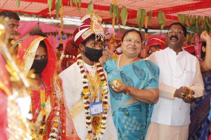 इस सामुहिक विवाह के अनुकरणीय पहल के लिए मंत्री भेड़िया ने कलेक्टर एवं स्थानीय प्रशासन को भी बधाई दी। इस अवसर पर नगर पालिका अध्यक्ष नवापारा धनराज मध्यानी, राजिम नपा अध्यक्ष श्रीमती रेखा राजू सोनकर ,जनपद अध्यक्ष फिंगेश्वर पुष्पा साहू, जिला पंचायत सदस्य लक्ष्मी साहू, श्री भावसिंह साहू, पदमा दुबे, विकास तिवारी, कलेक्टर सुश्री नम्रता गांधी, पुलिस अधीक्षक जे आर ठाकुर,जिला पंचायत सीईओ रोक्तिमा यादव एवं महिला बाल विकास के अधिकारी जगरानी एक्का तथा वर-वधु के परिवार व आगंतुक भी मौजूद थे।