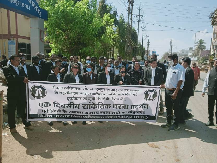 बस्तर जिला बार एसोसिएशन के बैनर तले सुबह से ही न्यायालय परिसर के भीतर तंबू गाड़ कर अधिवक्ताओं ने धरना दिया तदोपरांत रैली की शक्ल में अधिवक्ताओं ने प्रमुख चौक चौराहों से होतेहु कोतवाली थाना परिसर पहुंचे और वहां उपस्थित अधिकारियों को एक ज्ञापन सौंपा। अधिवक्ताओं ने एक सूर में कहा कि वकीलों के साथ मारपीट में शामिल सभी के खिलाफ एफआईआर दर्ज हो और जो झूठे प्रकरण वकीलों पर दर्ज हुए हैं उसकी वापसी हो। दूसरी तरफ वकीलों के राजस्व व जिला न्यायालय में काम काज ठप्प करने का बड़ा असर हुआ।आज न्यायालयीन कार्य के भटकते हुए देखा गया।