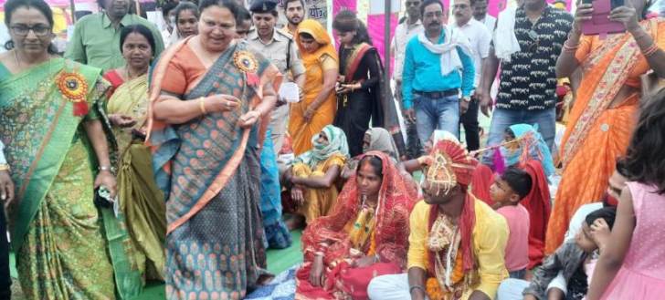 मुख्यमंत्री कन्या विवाह योजना के अंतर्गत आज दल्लीराजहरा के गायत्री शक्तिपीठ परिसर में परिवारजनों एवं गणमान्य अतिथियों की मौजूदगी में 56 जोड़ों का सामूहिक विवाह सम्पन्न हुआ। प्रदेश की महिला एवं बाल विकास तथा समाज कल्याण मंत्री अनिला भेंडिया ने नवदम्पत्तियों को सुखमय दाम्पत्य जीवन के लिए आर्शीवाद दिया। इस अवसर पर उन्होंने कहा कि यह बहुत ही शुभ अवसर है, यहाॅ एक साथ 56 जोड़ों का विवाह सम्पन्न हुआ। उन्होंने कहा कि मुख्यमंत्री सामूहिक कन्या विवाह योजना शासन की महत्वाकांक्षी योजना है। मुख्यमंत्री भूपेश बघेल की संवेदनशील सोंच है कि बेटियों का विवाह बिना किसी पारिवारिक खर्च के आसानी से हो। इसी सोंच के चलते उन्होंने योजना के अंतर्गत दिए जाने वाले राशि पन्द्रह हजार रूपए से बढ़ाकर पच्चीस हजार रूपए देने का निर्णय लिया। इससे मुख्यमंत्री कन्या विवाह का आयोजन और अच्छे से हो रहा है।