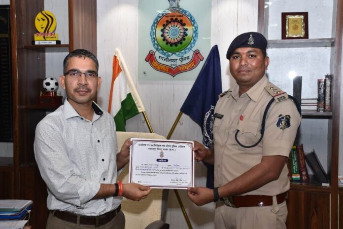छत्तीसगढ़ जगदलपुर हाउसिंग बोर्ड के कॉलोनी में 15 दिन पहले हुए डबल मर्डर की गुथी बस्तर पुलिस ने सुलझा ली पत्नी और बच्चे की हत्या करने वाले आरोपी को बिहार के गया से गिरफ्तार कर के लाया था इस डबल मर्डर कांड में जो पुलिस अधिकारी कर्मचारियों ने मेहनत की थी उसे देखते हुए पुलिस अधीक्षक जितेंद्र सिंह मीणा ने 45 पुलिस अधिकारी एवं कर्मचारियों का आज पुलिस अधीक्षक कार्यालय बुलाकर प्रशस्ति पत्र से सम्मानित किया |