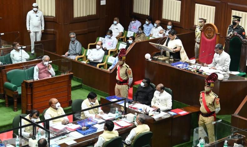 रायपुर। राज्यपाल अनुसुइया उईके के अभिभाषण के साथ विधानसभा का बजट सत्र सोमवार से शुरू हुआ। राज्यपाल ने सरकार के समावेशी विकास के माॅडल की जमकर सराहना की। उन्होंने कहा, राज्य जनहितकारी विकास के लिए देश और दुनिया में अलग पहचान बनाने में सफल हुआ है। विपक्ष के सदस्यों की टोकाटाकी के बीच राज्यपाल उईके ने कहा, स्थानीय संसाधनों और जनता के आत्मगौरव के प्रति सरकार के बेहद संवेदनशील व्यवहार को भरपूर सराहना मिल रही है। प्रदेश के समावेशी विकास का उल्लेख करते हुए उन्होंने कहा, मैं चाहती हूं कि आर्थिक रूप से कमजोर तबकों के साथ ही प्रदेश के समग्र विकास में आई तेजी का सिलसिला लगातार जारी रहे और इसमें आप सबका भरपूर सहयोग मिले। सत्र के पहले ही दिन सदन में विपक्ष की तरफ से हंगामा शुरू हो गया है। सदस्यों ने सत्र की अवधि छोटी होने और चर्चा के लिए पर्याप्त समय नहीं होने की बात कहते हुए समय बढ़ाने की मांग की। अध्यक्ष ने इस पर विचार करने का आश्वासन दिया, इसके बावजूद विपक्षी भाजपा सदस्यों ने सदन से बहिर्गमन कर दिया।