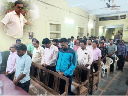 आज शाम दि.07/03/2022 SKMS यूनियन आफिस में यूनियन के सक्रिय कार्यकर्ता कामरेड श्री अरविंदम चौधरी जी का आकस्मिक निधन हो जाने के बाद उनकी मृतात्मा को शान्ति प्रदान करने के लिए यूनियन के पदाधिकारियों द्वारा दो मिनट का मौन धारण किया एवम् श्रद्धांजलि दी गई यूनियन आफिस में सैकड़ों कर्मचारी उपस्थित थे |