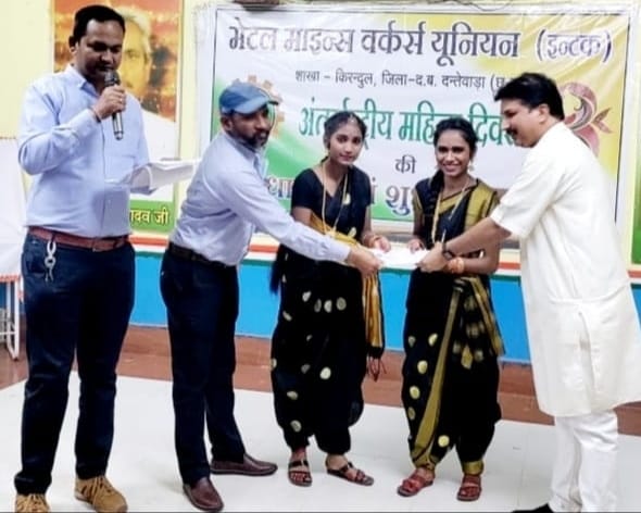 किरंदुल – लौह नगरी किरंदुल एनएमडीसी परियोजना में मजदूरों के हितों के लिए गठित मेटल माइन्स वर्कर्स यूनियन “इंटक” ने अपने कार्यालय श्रमिक सदन में अंतर्राष्ट्रीय महिला दिवस का आयोजन बड़े ही धूमधाम से किया। इस अवसर पर महिलाओं के लिए विभिन्न प्रतियोगिताओं का आयोजन किया गया था। जिसमें रंगोली प्रतियोगिता केक बनाओ प्रतियोगिता रस्सा खींच की प्रतियोगिता रखी गई थी। जिसमें क्रमशः प्रथम पुरस्कार 2000 द्वितीय पुरस्कार 1500 तृतीय पुरस्कार 1000 रुपए रखी गई थी।