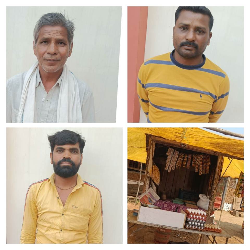 बालोद – विगत कुछ दिनो से कॉलेज ग्राउण्ड के पीछे चखना सेंटर खोलकर शराबियों को शराब पीने पिलाने की सुविधा मुहैय्या कराने वालो के संबंध में आमजनों के द्वारा मिल रही शिकायत पर पुलिस अधीक्षक गोवर्धन राम ठाकुर के मार्गदर्शन एवं उप पुलिस अधीक्षक नवनीत कौर के निर्देशन एवं पुलिस अनुविभागीय अधिकारी राजेश बागड़े के पर्यवेक्षण में तथा थाना प्रभारी गुरूर निरीक्षक रोहित मालेकर के नेतृत्व में गठित टीम ने मौके पर जाकर घेराबंदी कर रेड कार्यवाही किये जो अवैध रूप से शराबियो को शराब पीने पिलाने की सुविधा मुहैय्या कराने वाले आरोपी (01) सुबेलाल साहू पिता स्व. गुहारीराम साहू उम्र 57 वर्ष साकिन वार्ड क्र. 12 पंडित दीनदयाल उपाध्याय नगर गुरूर थाना गुरूर जिला बालोद को पकड़ा गया जिनके कब्जे से 01 पौवा देशी प्लेन शराब कुल 80 एमएल भरी हुई कीमती 40 रूपये (02) दूजराम सिप्पी पिता परमानंद सिप्पी उम्र 35 वर्ष साकिन वार्ड क्र. 14 शान्तिनगर गुरूर थाना गुरूर जिला बालोद को पकड़ा गया जिनके कब्जे से 01 पौवा देशी प्लेन शराब कुल 50 एमएल भरी हुई कीमती 60 रूपये (03) दयाराम गायकवाड़ पिता माखनराम गायकवाड़ उम्र 36 वर्ष साकिन वार्ड क्र.14 शान्तिनगर गुरूर गुरूर थाना गुरूर जिला बालोद को पकड़ा गया जिनके कब्जे से 01 पौवा देशी प्लेन शराब कुल 100 एमएल भरी हुई कीमती 50 रूपये को जप्त कर आरोपियों के विरूद्ध धारा 36(सी) आबकारी एक्ट के तहत गिरफ्तार किया गया तथा भविष्य चखना दुकान नही लगाने के संबंध में समझाईस दिया!