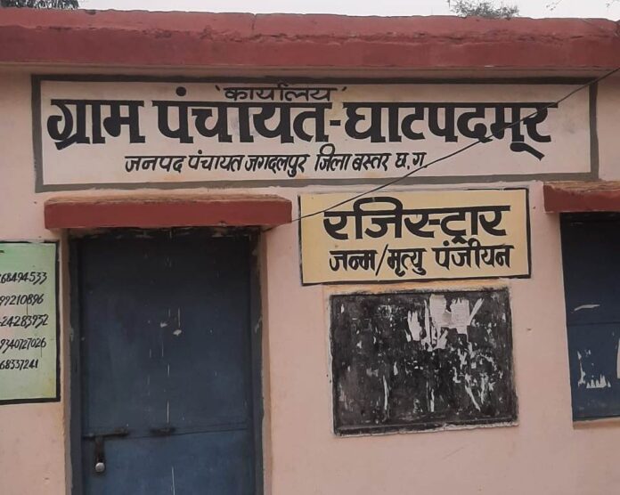 जगदलपुर : जगदलपुर जनपद पंचायत के अंतर्गत आने वाला ग्राम पंचायत घाटपदमुर इन दिनों पंचायत सचिव की लापरवाही के चलते सुर्खियां बटोर रहा है पंचायत सचिव ममता ध्रुव की लापरवाही के चलते गांव के विकास कार्य प्रभावित हो रहे हैं जिससे पंचायत के जनप्रतिनिधियों को मुसीबतों का सामना करना पड़ रहा है पंचायत के सरपंच ने जिला पंचायत में लिखित शिकायत कर बताया कि पंचायत सचिव पदस्थापना के बाद से ही लगातार लापरवाही बरत रही है पंचायत में नियमित उपस्थिति भी नहीं देती और कभी समय पर पंचायत में उपस्थित नहीं होती |