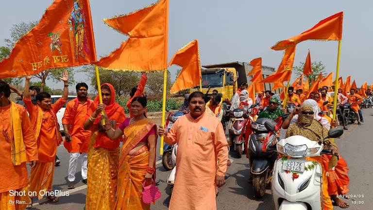 भानपुरी..। सर्व हिंदू समाज के तत्वधान में आज चैत्र नवरात्रि के महा अष्टमी पर्व पर मर्यादा पुरुषोत्तम भगवान श्री राम के जन्म उत्सव भानपुरी में बड़ी संख्या में महिला एवं युवाओं के द्वारा बाइक रैली निकालकर डीजे की धुन में जय श्री राम के गगनचिंभी जयकारे के साथ भगवा झंडे लिए युवा जुलूस के दौरान रामनवमी पर्व भव्य शोभायात्रा निकाली गई, समापन के अवसर पर भानपुरी माता मंदिर में भक्तों के लिए भंडारा का आयोजन किया गया इस रैली में बड़ी संख्या में लोग रहे मौजूद।