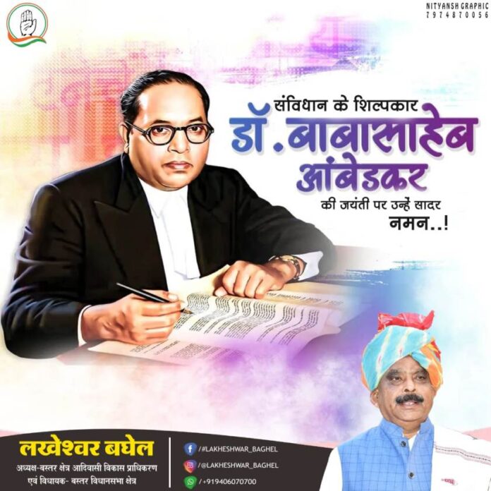 बस्तर विधायक लखेश्वर बघेल ने संविधान निर्माता, स्वतंत्र भारत के प्रथम विधि मंत्री भारतरत्न डॉ. भीमराव अम्बेडकर की जयंती पर उन्हें किया नमन |