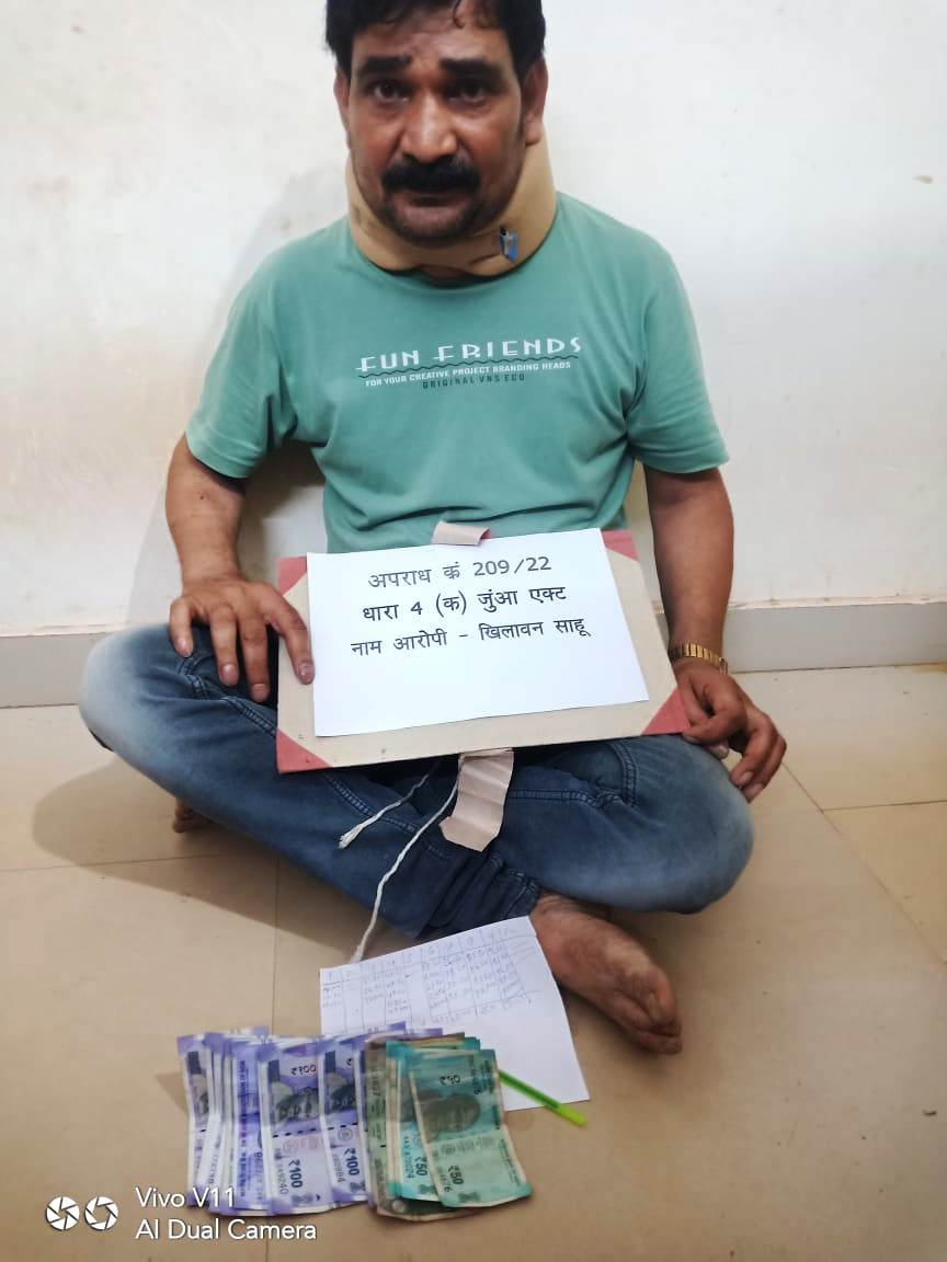 पुलिस अधीक्षक महोदय गोवर्धन ठाकुर के मार्गदर्षन, अतिरिक्त पुलिस अधीक्षक महोदय श्रीमती प्रज्ञा मेश्राम एवं उप पुलिस अधीक्षक राजेष बागड़े पर्यवेक्षण अधिकारी के निर्देशन मे अवैध जुंआ सट्टा एवं अवैध षराब ब्रिकी रोकथाम रेड कार्यवाही हेतु टीम गठित कर थाना गुरूर पुलिस भ्रमण पर निकला था कि दिनांक 15.04.2022 को ग्राम भ्रमण के दौरान रेड कार्यवाही कर सट्टा पट्टी नामक जुंआ खिलाते आरोपी खिलावन साहू पिता शिवनारायण साहू आयु 54, निवासी वार्ड क्रं 11 गुरूर को सांई जनरल स्टोर्स भरदा के पास पकड़ा गया। आरोपी के कब्जे से सट्टा पट्टी व नगदी रकम 1500 रू को जप्त कर कब्जा पुलिस लिया गया। आरोपी का कृत्य अपराध सदर धारा 4(क) जुआ एक्ट का घटित करना पाये से अपराध पंजीबद्व कर विवेचना में लिया गया। उक्त प्रकरण की कार्यवाही में निरीक्षक रोहित मालेकर, सहायक उप निरीक्षक विष्वजीत मेश्राम, आरक्षक योगेन्द्र सिन्हा, छगन सिन्हा, महेन्द्र जैन, का सराहनीय योगदान रहा।