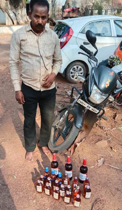 घटना दिनांक 23.03.2022 को पुलिस को सूचना मिला कि एक व्यक्ति द्वारा वाहन क्रमांक सीजी 04 डी डब्लू 8514 में अधिक मात्रा में अवैध अंग्रेजी शराब रखकर बोहारडीह की ओर जा रहा कि सूचना पर पुलिस अधीक्षक महोदय गोवर्धन राम ठाकुर के मार्गदर्शन एवं अतिरिक्त पुलिस अधीक्षक महोदय प्रज्ञा मेश्राम के निर्देशन एवं पुलिस अनुविभागीय अधिकारी राजेश बागड़े के पर्यवेक्षण में तथा थाना प्रभारी निरीक्षक रोहित मालेकर के नेतृत्व में टीम गठित ने मौके पर जाकर घेराबंदी कर वाहन हिरो होण्डा सीजी 04 डी डब्लू 8514 को रोककर चालक से पुछताछ किया पुछताछ करने पर अपना नाम रामबहादुर पिता चैतराम उम्र 50 वर्ष साकिन बालोदगहन थाना गुरूर जिला बालोद (छ.ग.) रहने वाला बताया एवं उक्त शराब को बालोदगहन स्थित सोनी ढाबा के लिए ले जाना बताया वाहन तलाशी लिया गया तलाशी मे आरोपी द्वारा मोटर सायकल रखे सफेद रंग के प्लास्टिक थैला मे कुल 12 नग गोल्डन गोवा कुल 2.160 बल्क लीटर, 03 पौवा रायल स्टेट अंगेजी शराब 0.540 बल्क लीटर 03 नग इम्पीरियल ब्लू 0.540 बल्क लीटर 03 नग बटवाइजर बियर 1.950 बल्क लीटर जुमला 5.190 बल्क लीटर कीमती 3390 रूपये एवं घटना मे प्रयुक्त मोटर सायकल हीरो होण्डा सीजी 04 डी डब्लू 8514 कीमती 20,000 रूपये एवं एक नग जीयो कंपनी का मोबाईल मय सिम को समक्ष गवाहन को जप्त किया ,मौके में पहिवहन से संबंधित किसी प्रकार का कोई दस्तावेज नही प्रस्तुत नही करने मामला धारा 34(2) आबकारी एक्ट पाये जाने से आरोपी को गिरफ्तार कर न्यायिक रिमांड पर भेजा गया है।