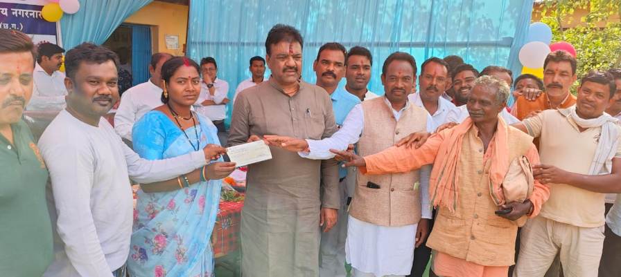 नेशनल मिनरल डेवलपमेंट कारपोरेशन के सी एस आर , स्थानीय क्षेत्र विकास निधि के तहत मेला एवं मंडई के आयोजन हेतु एक लाख रुपए का चेक आयोजन समिति के सदस्यों की उपस्थिति में उपनपाल सरपंच कामिनी नागेश को सौंपा |
