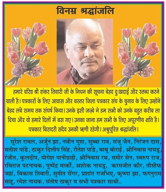 श्री तिवारी का रायपुर के एक निजी अस्पताल में उपचार के दौरान निधन हो गया। वे लंबे समय से बस्तर की पत्रकारिता में सक्रिय रहे।