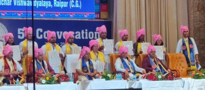 जगदलपुर। बस्तर के वरिष्ठ पत्रकार राजेन्द्र कुमार तिवारी के सुपुत्र केशव तिवारी को पत्रकारिता के क्षेत्र में अंग्रेजी विषय पर मॉस कम्यूनिकेशन में उल्लेखनीय कार्य करने के लिए राजधानी रायपुर में आज कुशाभाऊ ठाकरे पत्रकारिता विश्वविद्यालय के पांचवें दीक्षांत समारोह में उपाधि दी गई। मुख्य अतिथि प्रदेश की राज्यपाल महामहिम अनुसुइया उइके के करकमलों से केशव तिवारी को यह उपाधि प्राप्त हुई। महामहिम राज्यपाल के पीछे डिग्री थामे केशव तिवारी परिलक्षित हो रहे हैं। श्री तिवारी नगर के निर्मल विधालय में अंग्रेजी विषय पर पढ़ाई किया है और वह पत्रकारिता के क्षेत्र में अंग्रेजी माध्यम से कार्य कर रहें हैं जोकि बस्तर क्षेत्र के लिए उपलब्धि है। तिवारी ने पिता राजेंद्र तिवारी भी बस्तर क्षेत्र में पत्रकारिता के सशक्त हस्ताक्षर हैं जिन्होंने की महत्त्वपूर्ण समाचार समूहों में कार्य किया है।