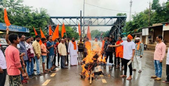 बस्तर:राजस्थान के उदयपुर में कन्हैया लाल जी ने धमकी के भय से स्थानीय प्रशासन से सुरक्षा मांगी थी सुरक्षा नहीं मिलने के कारण यह घटना हुआ किंतु जिसका फायदा दो आतंकी जिहादि युवकों ने उठाया , हिंदू टेलर कन्हैया लाल जी की निर्ममता से हत्या कर दी गई और कट्टर पंथियों द्वारा हत्या का वीडियो भी बनाया गया और वीडियो को वायरल किया गया, उक्त वीडियो में देश के माननीय प्रधानमंत्री मोदी जी का भी इसी तरह हत्या करने का धमकी दिया गया। जिससे पूरे भारतवर्ष में हिंदू समाज आक्रोशित होकर विश्व हिंदू परिषद बजरंग दल के तत्वाधान में क्षेत्र जिला ग्रामीण स्तर में नगर में इसका विरोध प्रदर्शन किया गया और एक दिवसीय छत्तीसगढ़ बंद का आवाह्नन किया गया जगह जगह हिंदू समाज एवं अनुषांगिक संगठन अपने अपने स्तर में पुतला दहन एवं ज्ञापन राष्ट्रपति के नाम से सौंपा गया ऐसे मुस्लिम कट्टरपंथियों के ऊपर कड़ी से कड़ी कार्रवाई हो और सभी हिंदू समाज का एक ही मांग है फांसी हो ऐसे कट्टरपंथियों को चिन्हित कर उनको समय से पहले उनके ऊपर कड़ी से कड़ी कार्रवाई होनी चाहिए।