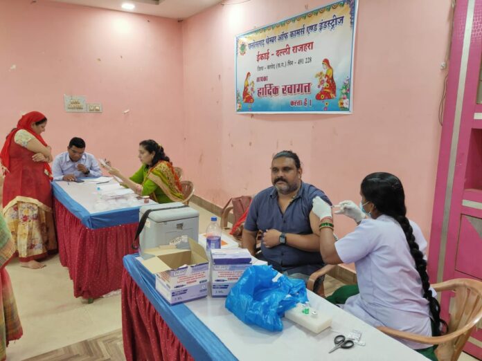 छत्तीसगढ़ चेम्बर ऑफ कॉमर्स एन्ड इंडस्ट्रीज दल्लीराजहरा इकाई द्वारा कोविड वेक्सिनेशन शिविर का आयोजन कर सफलता पूर्वक सम्पन्न कराया दल्लीराजहरा वासियो एवं व्यापारी भाइयो ने जगरूकता का परिचय देते हुए आज दिनांक 21/7/22 दिन गुरुवार को 12 वर्ष से 18 वर्ष के बच्चो को कोविड वेक्सीन लगाई गई एवं जिनको वेक्सीन का दूसरा डोज लगे 6 माह हो चुका है उन्होंने भी बूस्टर डोज लगवाए