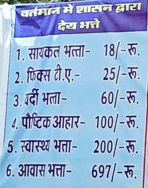 जानकारी के अनुसार राज्य के समस्त शासकीय कार्यलयों में अधिकारी- कर्मचारियों को फिक्स डिपाजिट देय भत्ता मिल रहा है। किंतु दुर्भाग्य ही कहा जाये कि हमारे पुलिस प्रशासन के 24 घंटे ड्यूटी निभाने वाले कर्मचारियों को केवल आज भी सायकल भत्ता 18 रु, फिक्स टीए 25 रु, वर्दी भत्ता 60 रु, पौष्टिक आहार 100 रु, स्वास्थ्य भत्ता 200 रु व आवास भत्ता 697 रु ही मिल रहा है। आप सभी का सोचनीय तथ्य है कि चौबिसिय घण्टे जिले व विकासखंड का देखरेख करने वाले सिपाही अपने कर्तव्य के प्रति कितने जिम्मेदारी पूवर्क निर्वाहन करते आ रहे है।