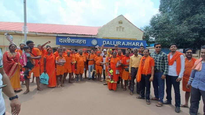 आज शिव भक्तों को रवाना करने के पूर्व विहीप की मातृशक्ति ने कांवरियों पर फूलों की वर्षा कर सभी को मिठाई खिलाकर रवाना किया इस पावन कार्यक्रम में शामिल हुए दल्ली राजहरा मातृशक्ति संयोजिका जानकी यादव सह संयोजिका नंदा पसीने, सोनिया सिंह समाज सेवक और वरिष्ठ नागरिक किशोर चंद जैन भारतीय मजदूर संघ के नगर अध्यक्ष मदन माइती विश्व हिंदू परिषद के जिला उपाध्यक्ष नीलेश श्रीवास्तव जिला सह मंत्री विजय सिंह नगर सह मंत्री अर्जुन राय नगर महामंत्री शंकर साहू, सोनू ठगेल गोलू जायसवाल, विवेक पांडे युवा नेता गणेश निषाद बजरंग दल अध्यक्ष शशांक तिवारी कुणाल कथुरिया विजय कुशवाहा नितिन सहारे और बजरंग दल विश्व हिंदू परिषद के कार्यकर्ता विशेष रूप से उपस्थित थे ।ये जा रहे यात्रा में :- शिव संस्कार धाम से बोल बम कांवरियों के दल में प्रमुख रूप से हेमशंकर साहू, रमेश रावटे, अतुल लालवानी,हिरालाल साहू,संजय सिंग, राजेश श्रीवास्तव,आशीष साहू,केदारनाथ,साधुराम सुरेंद्र,दुकालू यादव, श्रीमती पार्वती सुरेंद्र,गोदावरी साहू,नीरा साहू,दीपिका साहू कुल सहित 68 शिव भक्तो की टोली पहले काशी विश्वनाथ व सुल्तानपुर से बाबा वैधनाथ की कावड यात्रा करेंगे। शिव संस्कार धाम से आरती पूजन कर उत्साह के साथ यात्रा मंगलमय हों सभी नगरवासियों ने भी बधाई दी