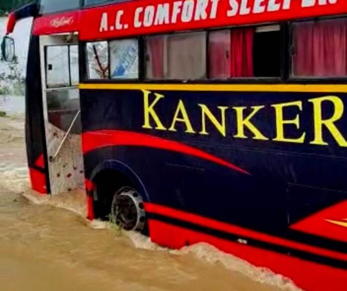 भानपुरी। राष्ट्रीय राजमार्ग 30 पर जगदलपुर -रायपुर मार्ग सोनारपाल चपका मोड़ के पास मार्ग में पानी भर जाने के कारण रास्ता मारकंडी नदी काकडी घाट पुल के दोनों तरफ रास्ता बंद रहा। सोनारपाल -बालेगा में वाहनों की लंबी कतार लगी रही। दोपहर को पानी कम होने के कारण रास्ता साफ हुआ।