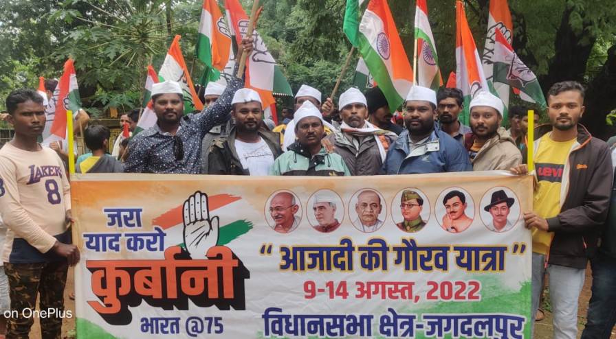 ↪️ भारतीय राष्ट्रीय कांग्रेस आव्हान प्रदेश कांग्रेस कमेटी के निर्देशानुसार बस्तर जिला कांग्रेस कमेटी शहर द्वारा आजादी के 75 वें वर्षगांठ के अवसर पर आज़ादी की गौरव यात्रा आज द्वितीय दिवस पर विभिन्न ग्राम पंचायतों जिसमे आमागुड़ा, बम्हनी, जीरा गांव, कुम्हली मारकेल 2, सिवनागुड़ा, हजारीगुड़ा, कोप्पागुड़ा व खुटपदर, हुए मारकेल 1 पहुंची, जहां बारिस के बावजूद भी ग्रामीणों में अभूतपूर्व उत्साह के साथ विभिन्न चौक चौराहों में पदयात्रा का भव्य स्वागत किया, पदयात्रा के दौरान पड़ने वाले धार्मिक स्थलों में विधिवत पूजा अर्चना कर आशिर्वाद लेकर बस्तर सहित छत्तीसगढ़ की सुख समृद्धि की कामना की पदयात्रा में जगह जगह बुजुर्गो का सम्मान कर बच्चों को चॉकलेट वितरित की। नेताओं ने आज़ादी के इतिहास सहित भूपेश सरकार की जनकल्याणकारी योजनाओं को विस्तार से जन-जन तक पहुचाते हुए ब्रोसर वितरित किये। प्रमुख चौक चौराहों पर ग्रामीणों के उमड़ते जनसैलाब को जनसभा के रुप मे कांग्रेस नेताओं ने सम्बोधित किया।