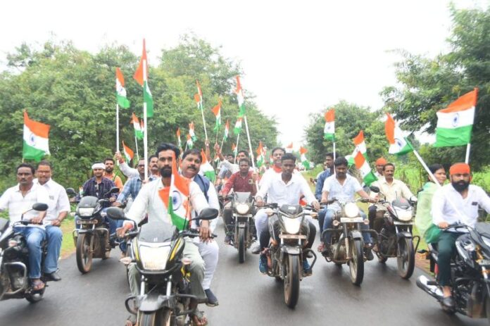 लहराया तिरंगा, देशभक्ति गीतों पर थिरके युवा, आजादी के अमृत महोत्सव के मौके पर निकली तिरंगा यात्रा