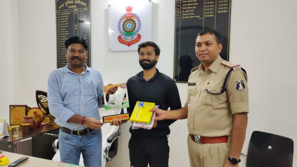 उक्त कार्यक्रम अन्तर्गत कोतवाली पुलिस को कई फोटोग्राफ प्राप्त हुए थे जिसमें पुलिस के आला-अधिकारी और सामाजिक कार्यकर्ताओ की गठित कमेटी के द्वारा 03 सर्वश्रेष्ठ फोटोग्राफ का चयन कर आज 03 प्रतिभागियो को सम्मानित किया गया है। उक्त सम्मान कार्यक्रम नगर पुलिस अधीक्षक कार्यालय में नगर पुलिस अधीक्षक हेमसागर सिदार एवं थाना प्रभारी सिटी कोतवाली एमन साहू के द्वारा उक्त चयनित तीन प्रतिभागियो को जिसमें प्रथम पुरस्कार श्री बसंत मेघानी, द्वतीय पुरस्कार कमाक्षी साहू एवं तृतीय राहुल पाण्डे को ट्राफी एवं आर्कषक पुरस्कार देकर सम्मानित किया गया। इसके अतिरिक्त सात्वंना पुरस्कार के रूप में श्री जावेद खान एवं अनिल राव को भी ट्राफी एवं पुरस्कार देकर सम्मानित किया गया है। सम्मानित प्रतिभागियो के द्वारा बस्तर पुलिस के द्वारा किये गये कार्यक्रम से प्रसन्न होकर आभार प्रकट कर धन्यवाद ज्ञापित किया गया है।
