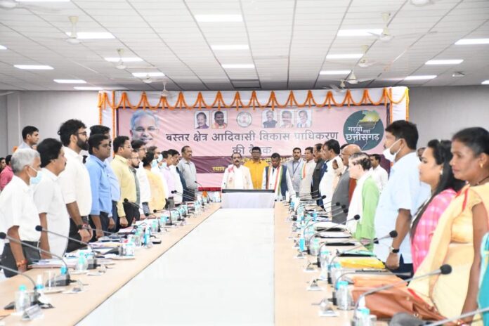 बस्तर क्षेत्र आदिवासी विकास प्राधिकरण की बैठक अध्यक्ष लखेश्वर बघेल और उद्योग व जिला प्रभारी मंत्री कवासी लखमा के अध्यक्षता में कोण्डागांव जिला कार्यालय के सभाकक्ष में आयोजित किया गया इस बैठक में बस्तर क्षेत्र आदिवासी विकास प्राधिकरण के सदस्यों ने 32 करोड़ की बजट को बढ़ाकर 100 करोड़ करने का प्रस्ताव किए सदस्यों ने वनाधिकार मान्यता पत्र पट्टाधारियों को शासन की योजनाओं का लाभ देने के साथ ही किसानों का पंजीयन और केसीसी कार्य को ग्राम स्तर व्यापक प्रचार प्रसार करने की अवश्यकता बताई साथ ही वनाधिकार ऋण पुस्तिका का वितरण ज्यादा से ज्यादा किया जाए बैठक में मुख्यमंत्री के भेंट मुलाक़ात कार्यक्रम में संभाग में 427 की घोषणाओं एवं निर्देश पर पालन प्रतिवेदन की भी समीक्षा किए बस्तर क्षेत्र आदिवासी विकास प्राधिकरण के बैठक में उपाध्यक्ष संतराम नेताम, विक्रम मंडावी, बस्तर सांसद दीपक बैज, कांकेर सांसद मोहन मंडावी, विधायक मोहन मरकाम, चंदन कश्यप, रेखचन्द जैन, श्रीमती देवती कर्मा, राजमन बेंज़ाम, अनूप नाग कमिश्नर एवं सचिव बविप्रा श्याम धावड़े के अलावा सभी जिलों के जिला पंचायत अध्यक्ष, बविप्र के मनोनीत सदस्य, सातों जिला के कलेक्टर एवं जिला पंचायत के मुख्यकार्यपालन अधिकारी व गणमान्य जनप्रतिनिधि उपस्थित थे