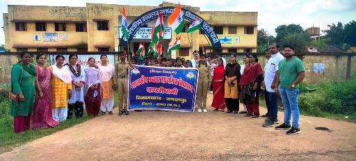 जगदलपुर :- आजादी के अमृतोत्सव के अवसर पर छत्तीसगढ़ सरकार क स्कूल शिक्षा विभाग द्वारा आयोजित हमर तिरंगा अभियान का आयोजन 21-08-2022से 27-08-2022तक विभिन्न कार्यक्रम आयोजित किया गया। इसी तारतम्य में आज दिनांक 27–08-2022दिन शनिवार को पंडरीपानी क्रं 02 की सरपंच श्रीमती जयती मौर्य के मुख्य आतिथ्य व स्कूल प्रबंधन समीति अध्यक्ष योगेश पानीग्राही, पूर्व उप सरपंच कमलू राम मौर्य की मौजूदगी में तिरंगा अभियान का समापन प्रभात फेरी रैली निकाल कर किया गया।
